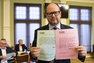 Gdańsk, Nowy Ratusz. XLIV Sesja Rady Miasta Gdańska. Nz. radny Przemysław Ryś