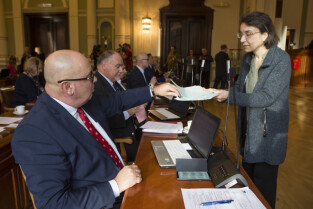 Gdańsk, Nowy Ratusz. XLIV Sesja Rady Miasta Gdańska. Nz. radna Dorota Dudek