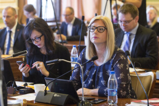 Gdańsk, Nowy Ratusz. XLIV Sesja Rady Miasta Gdańska. Nz. wiceprzewodnicząca rady Agnieszka Owczarczak