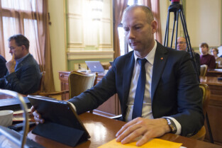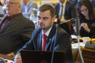 Gdańsk, Nowy Ratusz. XLIV Sesja Rady Miasta Gdańska. Nz. radny Mariusz Andrzejczak