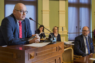 Gdańsk, Nowy Ratusz. XLIV Sesja Rady Miasta Gdańska. Nz. zastępca prezydenta Gdańska Piotr Kowalczuk