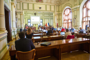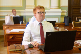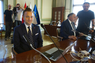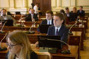 Gdańsk, Nowy Ratusz. Sesja Rady Miasta Gdańska. Nz. Mateusz Skarbek - wiceprzewodniczący Rady Miasta