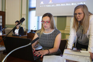 Gdańsk, Nowy Ratusz. Sesja Rady Miasta Gdańska. Nz. Przewodnicząca Rady Agnieszka Owczarczak i dyrektor biura Wioletta Krewniak
