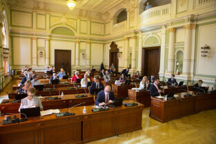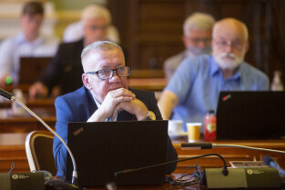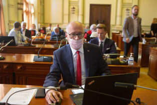Gdańsk, Nowy Ratusz. Sesja Rady Miasta Gdańska. Nz. wiceprzewodniczący Piotr Gierszewski