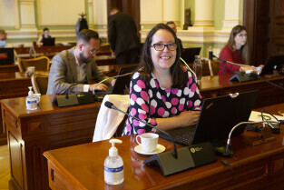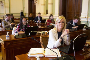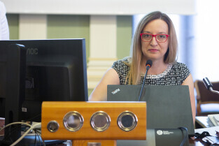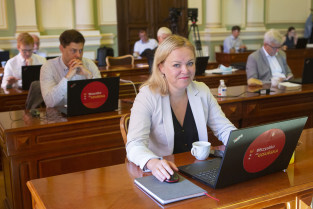Gdańsk, Nowy Ratusz. Sesja Rady Miasta Gdańska. Nz. radna Joanna Cabaj