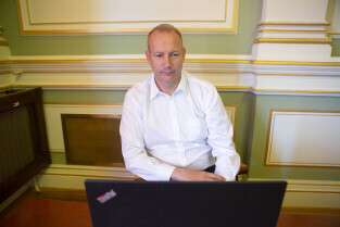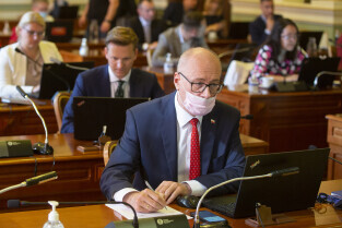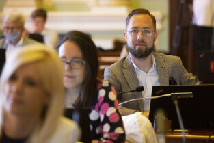Gdańsk, Nowy Ratusz. Sesja Rady Miasta Gdańska. Nz. radny Michał Hajduk