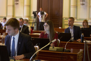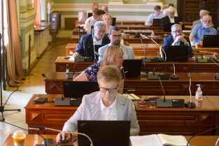 Gdańsk, Nowy Ratusz. Sesja Rady Miasta Gdańska. Nz. radny