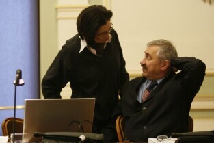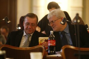 Sesja Rady Miasta Gdańska, podczas której m.in. uchwalono budżet na 2011 rok. Gdańsk, Nowy Ratusz. Nz. radni Kazimierz Koralewski (po lewej) i Wiesław Kamiński