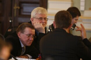 Sesja Rady Miasta Gdańska, podczas której m.in. uchwalono budżet na 2011 rok. Gdańsk, Nowy Ratusz. Nz. na pierwszym planie Lech Kaźmierczyk (po prawej) i Wojciech Błaszkowski