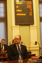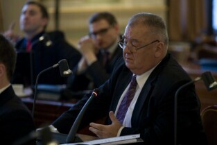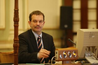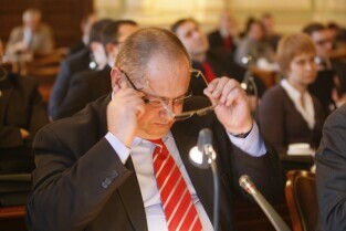 Sesja Rady Miasta Gdańska, podczas której m.in. uchwalono budżet na 2011 rok. Gdańsk, Nowy Ratusz. Nz. radny Mirosław Zdanowicz