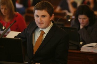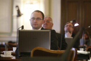 Sesja Rady Miasta Gdańska, podczas której m.in. uchwalono budżet na 2011 rok. Gdańsk, Nowy Ratusz. Nz. radny Marcin Skwierawski