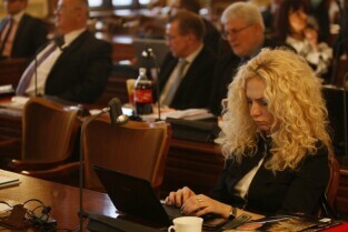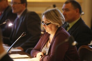 Sesja Rady Miasta Gdańska, podczas której m.in. uchwalono budżet na 2011 rok. Gdańsk, Nowy Ratusz. Nz. radna Beata Dunajewska-Daszczyńska