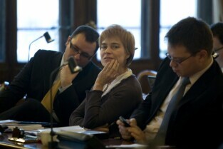Sesja Rady Miasta Gdańska, podczas której m.in. uchwalono budżet na 2011 rok. Gdańsk, Nowy Ratusz. Nz. radna Jolanta Banach