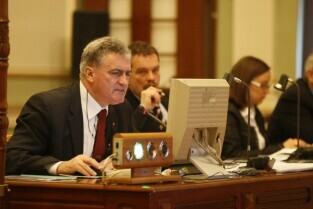 Sesja Rady Miasta Gdańska, podczas której m.in. uchwalono budżet na 2011 rok. Gdańsk, Nowy Ratusz. Nz. Przewodniczący Rady Bogdan Oleszek