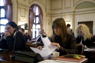 Sesja Rady Miasta Gdańska, podczas której m.in. uchwalono budżet na 2011 rok. Gdańsk, Nowy Ratusz. Nz. radna Halina Leman