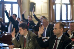 Sesja Rady Miasta Gdańska, podczas której m.in. uchwalono budżet na 2011 rok. Gdańsk, Nowy Ratusz