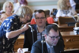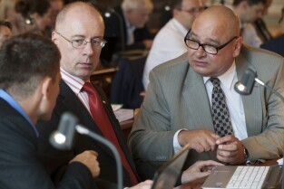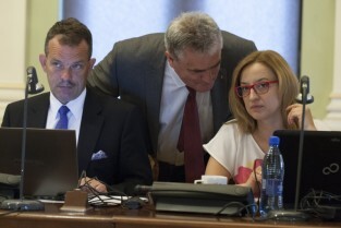 Gdańsk, Nowy Ratusz. Czerwcowa sesja Rady Miasta Gdańska. Nz. od lewej Radni: Jaromir Falandysz, Kazimierz Koralewski, Grzegorz Strzelczyk