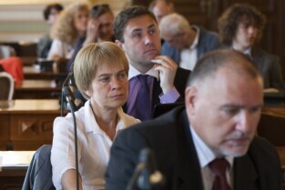 Gdańsk, Nowy Ratusz. Czerwcowa sesja Rady Miasta Gdańska. Nz. Skarbnik Miasta Gdańska Teresa Blacharska