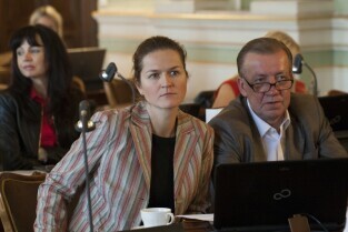 Gdańsk, Nowy Ratusz. Czerwcowa sesja Rady Miasta Gdańska. Nz. Radni Maria Małkowska i Dariusz Słodkowski