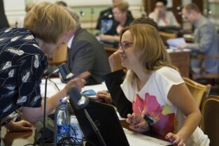 Gdańsk, Nowy Ratusz. Czerwcowa sesja Rady Miasta Gdańska. Nz. Wiceprzewodnicząca Rady Agnieszka Owczarczak