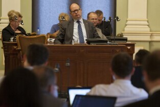 Gdańsk, Nowy Ratusz. Czerwcowa sesja Rady Miasta Gdańska. Nz. Radny Przemysław Ryś