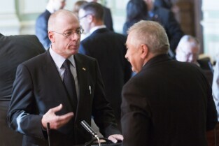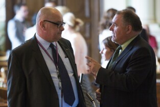 Sesja Rady Miasta Gdańska w Nowym Ratuszu. Nz. Radni Miasta Gdańska Grzegorz Strzelczyk i Piotr Gierszewski
