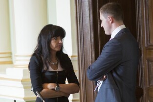 Sesja Rady Miasta Gdańska w Nowym Ratuszu. Nz. Radni Miasta Gdańska Żaneta Geryk i Piotr Grzelak