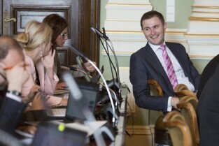 Sesja Rady Miasta Gdańska w Nowym Ratuszu. Nz. Radny Miasta Gdańska Marcin Skwierawski