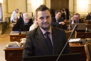 Gdańsk, Nowy Ratusz. Sesja Rady Miasta Gdańska, podczas której m.in. głosowano nad uchwałą nadającą tytuł Honorowego Obywatela Gdańska reżyserowi Andrzejowi Wajdzie. Nz. Radny Miasta Gdańska Grzegorz Strzelczyk