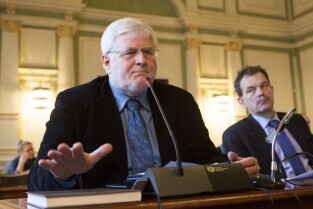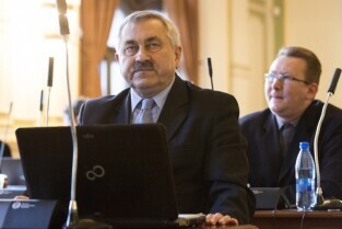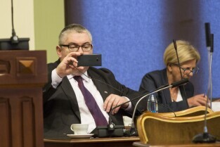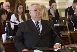 Gdańsk, Nowy Ratusz. Sesja Rady Miasta Gdańska, podczas której m.in. głosowano nad uchwałą nadającą tytuł Honorowego Obywatela Gdańska reżyserowi Andrzejowi Wajdzie. Nz. Radny Miasta Gdańska Kaziemierz Koralewski