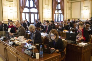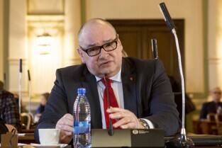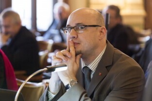 Gdańsk, Nowy Ratusz. Sesja Rady Miasta Gdańska, podczas której m.in. głosowano nad uchwałą nadającą tytuł Honorowego Obywatela Gdańska reżyserowi Andrzejowi Wajdzie. Nz. Z-ca Prezydenta Gdańska Piotr Kowalczuk
