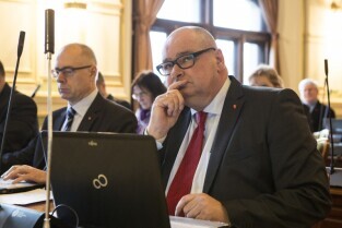 Gdańsk, Nowy Ratusz. Sesja Rady Miasta Gdańska, podczas której m.in. głosowano nad uchwałą nadającą tytuł Honorowego Obywatela Gdańska reżyserowi Andrzejowi Wajdzie. Nz. Przewodniczący Rady Miasta Gdańska Bogdan Oleszek