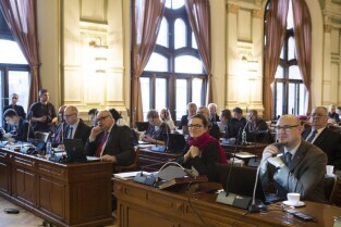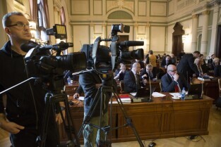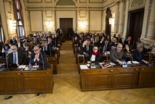 Gdańsk, Nowy Ratusz. Sesja Rady Miasta Gdańska, podczas której m.in. głosowano nad uchwałą nadającą tytuł Honorowego Obywatela Gdańska reżyserowi Andrzejowi Wajdzie
