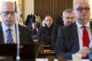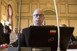 Gdańsk, Nowy Ratusz. Sesja Rady Miasta Gdańska, podczas której m.in. głosowano nad uchwałą nadającą tytuł Honorowego Obywatela Gdańska reżyserowi Andrzejowi Wajdzie. Nz. Radny Miasta Gdańska Wojciech Stybor