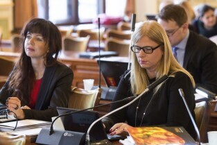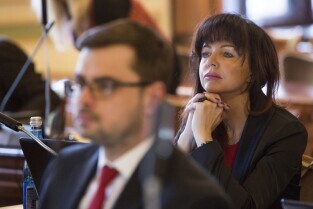Gdańsk, Nowy Ratusz. Sesja Rady Miasta Gdańska, podczas której m.in. głosowano nad uchwałą nadającą tytuł Honorowego Obywatela Gdańska reżyserowi Andrzejowi Wajdzie. Nz. Radna Miasta Gdańska Aleksandra Dulkiewicz