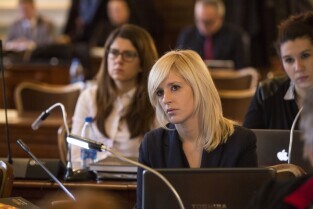 Gdańsk, Nowy Ratusz. Sesja Rady Miasta Gdańska, podczas której m.in. głosowano nad uchwałą nadającą tytuł Honorowego Obywatela Gdańska reżyserowi Andrzejowi Wajdzie. Nz. Radna Miasta Gdańska Żaneta Geryk