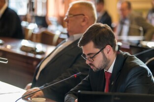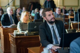 Sesja Rady Miasta Gdańska w Nowym Ratuszu. Nz radny, Łukasz Hamadyk.