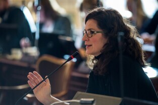 Sesja Rady Miasta Gdańska w Nowym Ratuszu. Nz radna, Aleksandra Dulkiewicz.