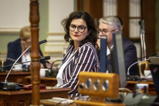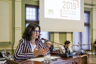 Gdańsk. Sesja Rady Miasta dotycząca m.in. udzielenia Prezydentowi Miasta Gdańska wotum zaufania oraz absolutorium za rok 2019. NZ. Prezydent Miasta Gdańska Aleksandra Dulkiewicz.