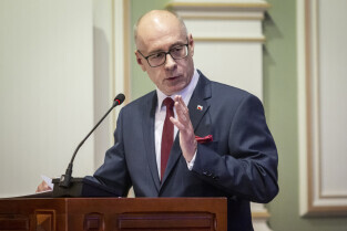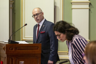 Gdańsk. Sesja Rady Miasta dotycząca m.in. udzielenia Prezydentowi Miasta Gdańska wotum zaufania oraz absolutorium za rok 2019. NZ. Radny z ramienia Prawa i Sprawiedliwości Kazimierz Koralewski