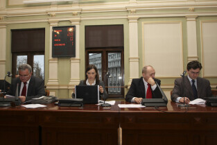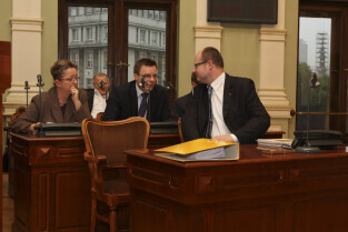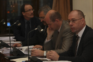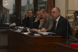 Sesja Rady Miasta Gdańska w Nowym Ratuszu. Nz. Klub PiS, od lewej: Krzysztof Wiecki, Jacek Włodzimierz Teodorczyk, Wiesław Kamiński, Kazimierz Koralewski