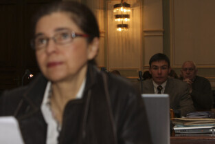 Sesja Rady Miasta Gdańska w Nowym Ratuszu. Nz. klub radnych PiS, na pierwszym planie Kazimierz Koralewski