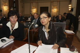 Sesja Rady Miasta Gdańska w Nowym Ratuszu. Nz. od lewej: Irena Dymarska i Małgorzata Chmiel