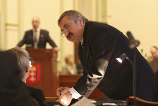 Sesja Rady Miasta Gdańska w Nowym Ratuszu. Nz. Kazimierz Koralewski