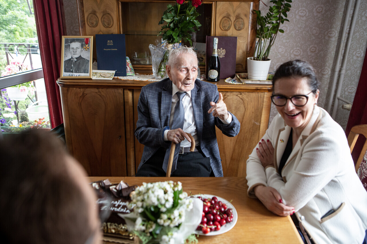Gdańsk. Z okazji setnych urodzin pana Augustyna Dziubka jubilata odwiedziła Prezydent Aleksandra Dulkiewicz