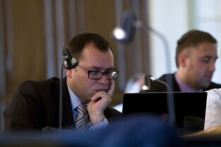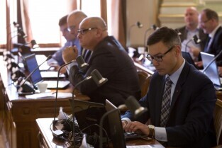Sierpniowa sesja Rady Miasta Gdańska w Nowym Ratuszu. Nz. Z-ca Prezydenta Gdańska Maciej Lisicki