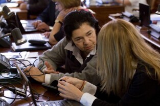 Sierpniowa sesja Rady Miasta Gdańska w Nowym Ratuszu. Nz. radne Beata Wierzba (po prawej) i Żaneta Geryk (po lewej)