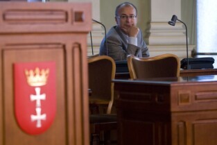Sierpniowa sesja Rady Miasta Gdańska w Nowym Ratuszu. Nz. Prezydent Gdańska Paweł Adamowicz