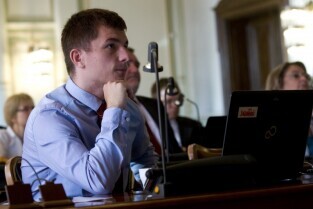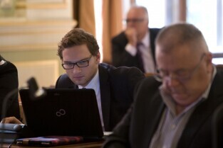Sierpniowa sesja Rady Miasta Gdańska w Nowym Ratuszu. Nz. radny Szymon Moś