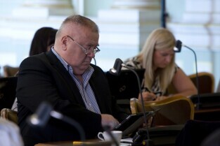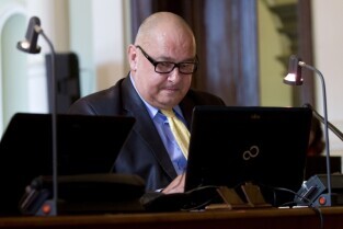 Sierpniowa sesja Rady Miasta Gdańska w Nowym Ratuszu. Nz. radny Mirosław Zdanowicz
